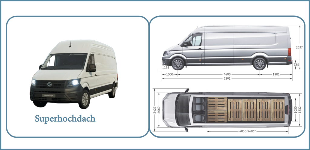 3- Kastenwagen Superhochdach wie VW Crafter Maxi 3,5